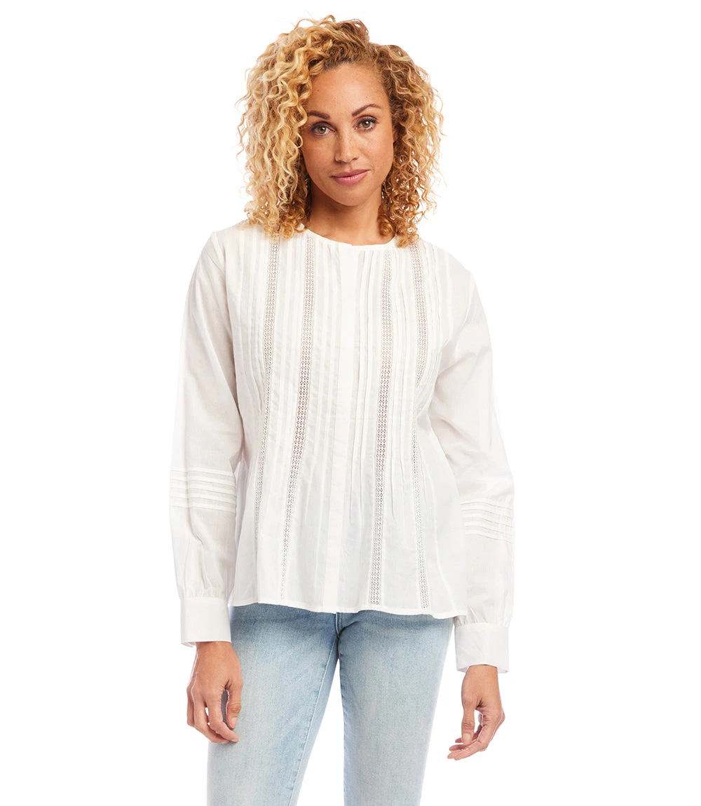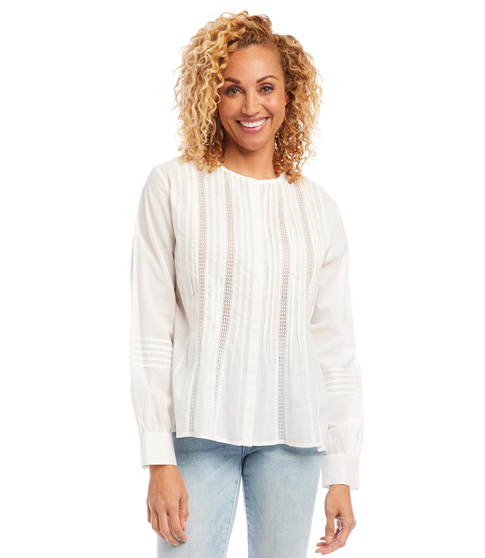 A chic, stylish top detailed with pleating and Bohemian-feeling embroidery