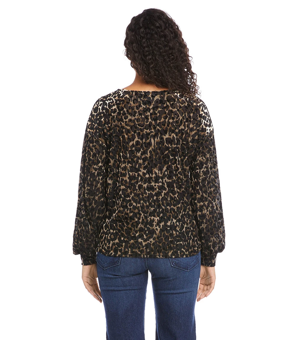 Velvet burnout in a charming leopard design lend both visual and textural interest to this knit top. Its detailed with billowy blouson sleeves and a stylish tie-front. With a touch of shimmer, this soft top is an easy way to dress up any look.