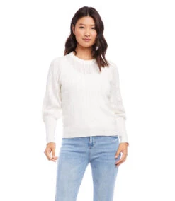 Buttery-soft sweater knit shapes this wool-blend cardigan detailed with statement-making puff sleeves. This cardigan is versatile enough for office hours, brunch and beyond.