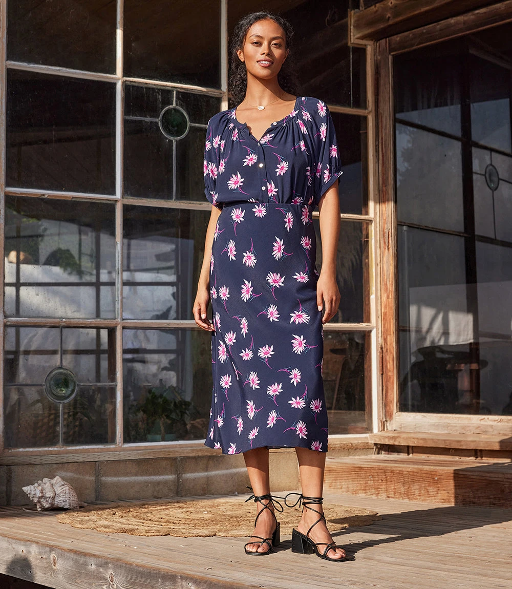 A collage of florals make a dynamic statement on this chic Bohemian top.