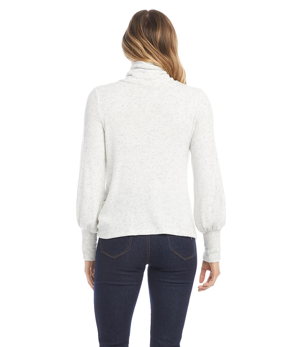 Cut from buttery soft rib knit, this timeless turtleneck top is refreshed with a stylish pick-up hem. It’s finished with billowy blouson sleeves.